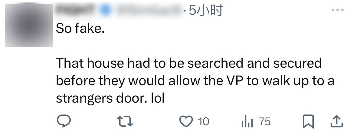 “太假了,在他們允許副總統走向陌生人的門前,房子早就被搜查和保衞起來了。”