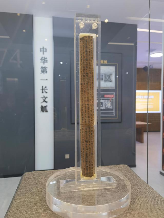 △雲夢縣出土的“中華第一長文觚”。(總枱央視記者陳曦拍攝)