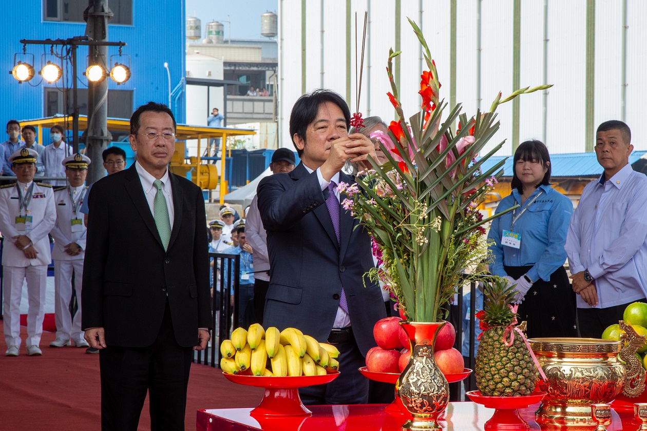 台軍“防空型”輕護首艦安放龍骨,賴清德帶頭“燒香祈福”