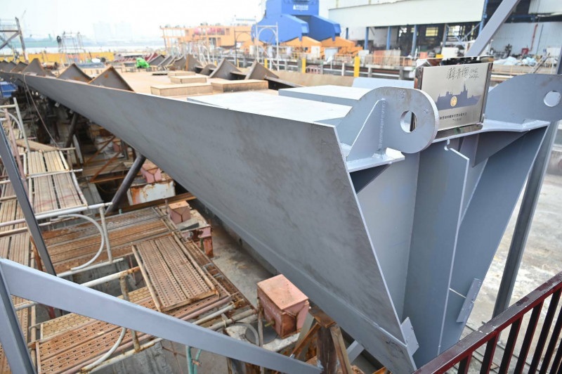 【文/觀察者網 山貓】綜合台媒報道,11月4日上午,島內自制“輕型巡防艦”(輕型護衞艦)的首艘“防空型原型艦”,在高雄旗津中信造船廠進行了“龍骨安放儀式”。台灣地區領導人賴清德在台當局“安全會議秘書長”吳釗燮、台防務主管部門負責人顧立雄、台“海軍司令”唐華等軍政高官的陪同下,前往船廠主持儀式。在儀式現場,賴清德在“中信造船集團”董事長韓碧祥的陪同下安放首塊龍骨分段,並向“紀念牌”中鑲嵌紀念幣,隨後在賴清德的帶領下,現場參與者還進行了燒香“祈福”活動。