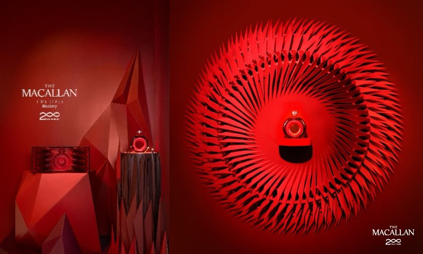 入口處6米高帶有“自然鋒芒”的紅色山峯裝置,重磅展陳了麥卡倫明日經典•200週年紀念款(TIME:SPACE Mastery)。這款威士忌精心甄選來自14種不同出眾品質的橡木桶陳年酒液,塑造出層次豐富,風味醇厚的威士忌佳作,充分展現麥卡倫的精湛制酒技藝,向歷代威士忌制酒大師致敬。酒液被盛裝在集聚先鋒技藝與古老匠藝的定製環形酒樽中,寓意生命的循環往復,以及從過去到未來的時光旅程,以此來禮讚品牌的百年傳承與卓越匠心。