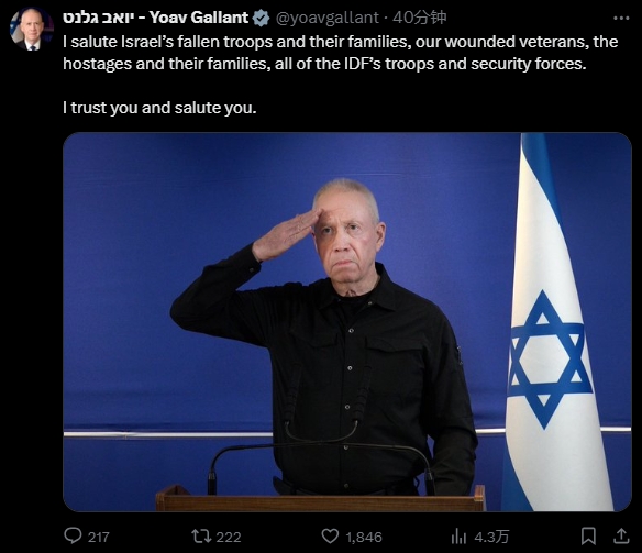 此消息傳出後,五角大樓新聞秘書帕特·賴德在一份聲明中表示:“加蘭特是以色列國防部長,也是值得信賴的合作伙伴。美國對以色列安全的承諾堅定不移,國防部將繼續與以色列下一任國防部長密切合作。”