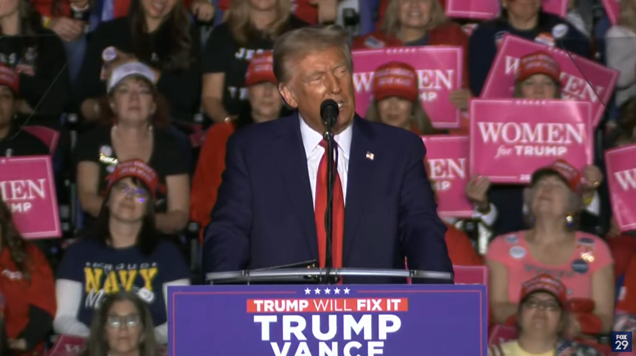 當地時間11月4日,特朗普在賓夕法尼亞州集會上發表講話。 FOX 29