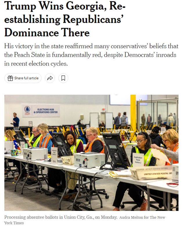 2024年美國大選,特朗普贏下佐治亞州截圖自紐約時報