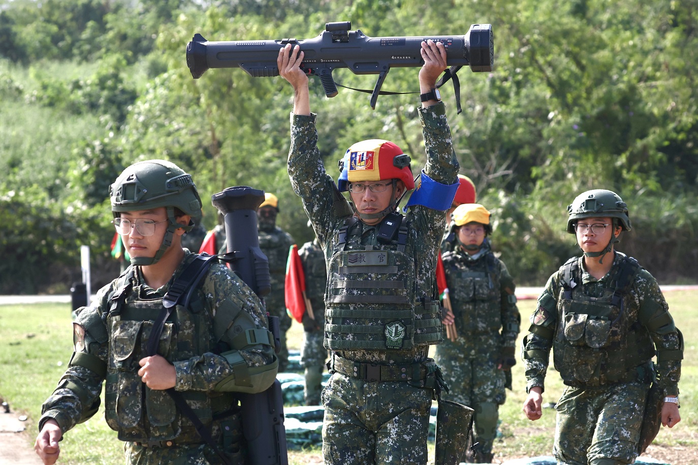 “南測基地”一名鑑測官將“啞火”的“紅隼”火箭筒高舉過頭頂,以帶離射擊陣地處置 台媒