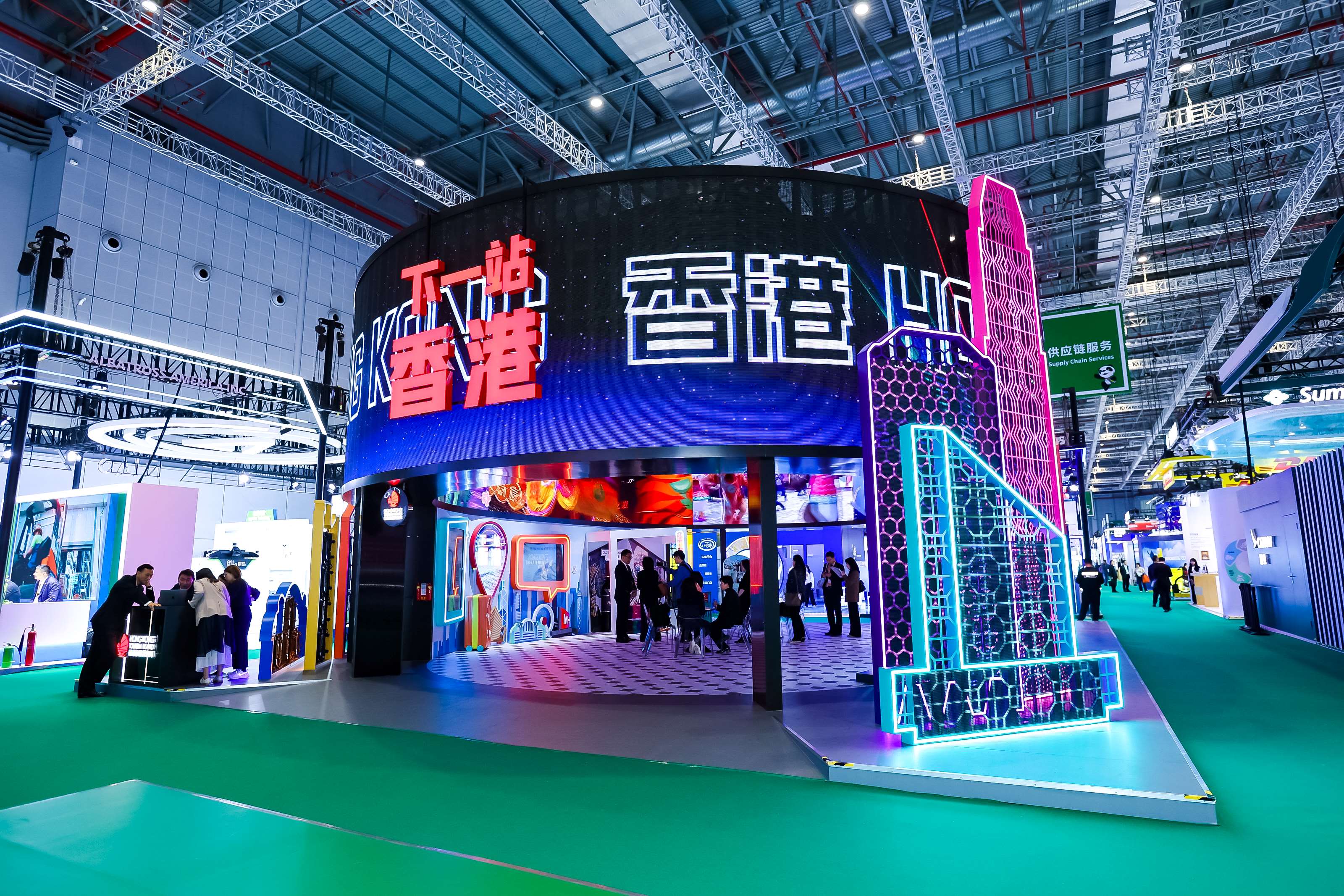 本屆進博會上,觀察者網發現,旅發局展區以360度LED穹幕和光影穿透技術,為觀眾帶來了身臨其境的沉浸式視覺效果。“本屆進博會,旅發局展區以‘下一站,香港’為主題。”程鼎一介紹道,“它不僅是一個口號,更是對未來香港旅業的定位與期許。”
