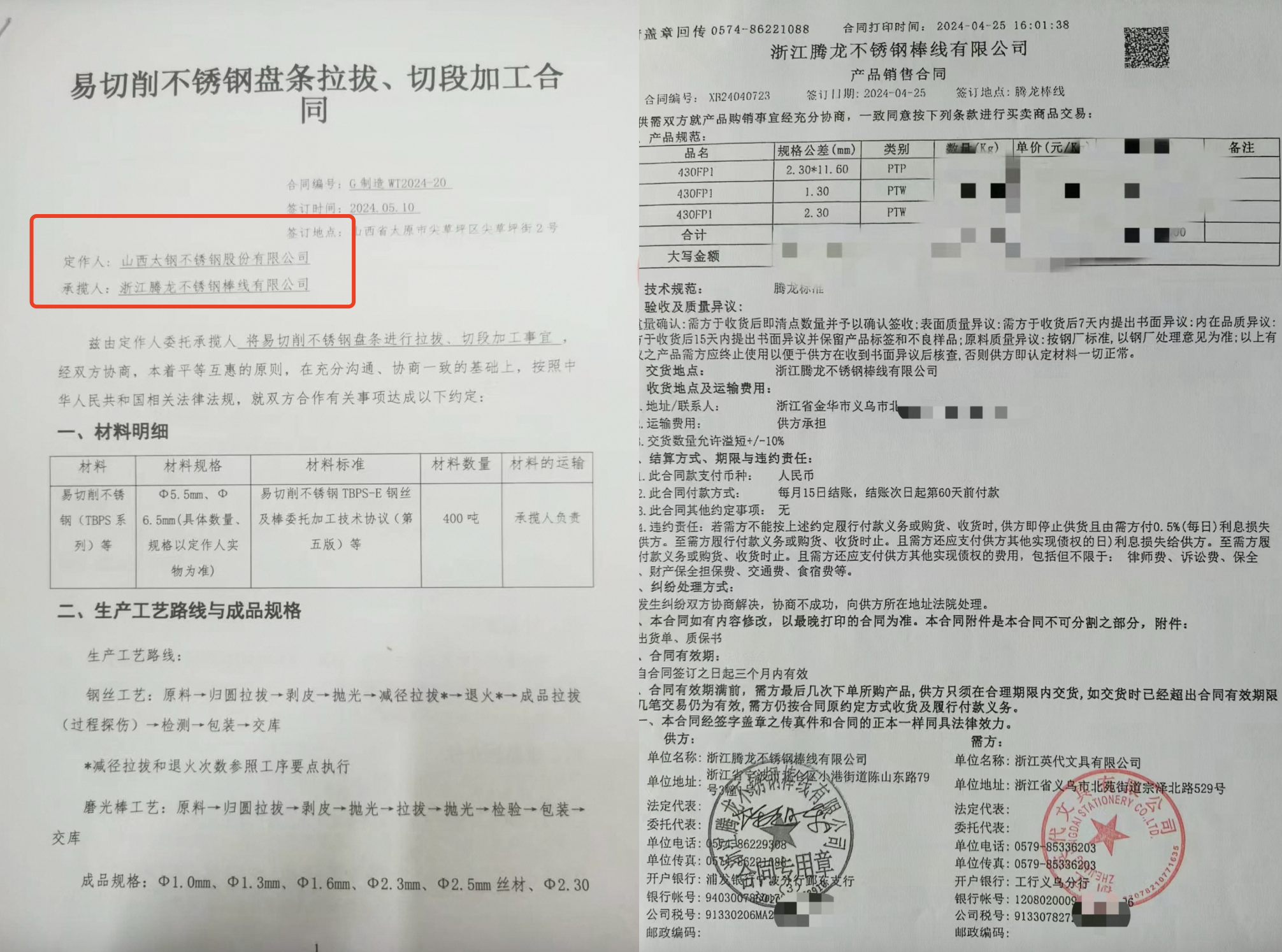 淘工廠聯合定製款“中國芯”的筆尖鋼來自於太鋼--採購合同