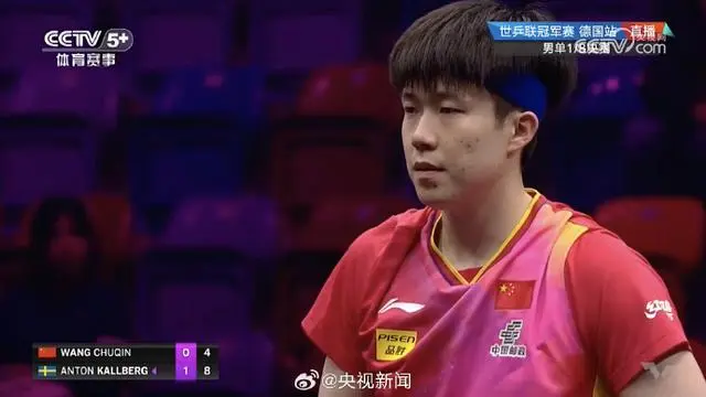 WTT法蘭克福冠軍賽男單R16,王楚欽0-3不敵瑞典選手安東·卡爾伯格,止步法蘭克福男單16強,比分:8-11、5-11、6-11。