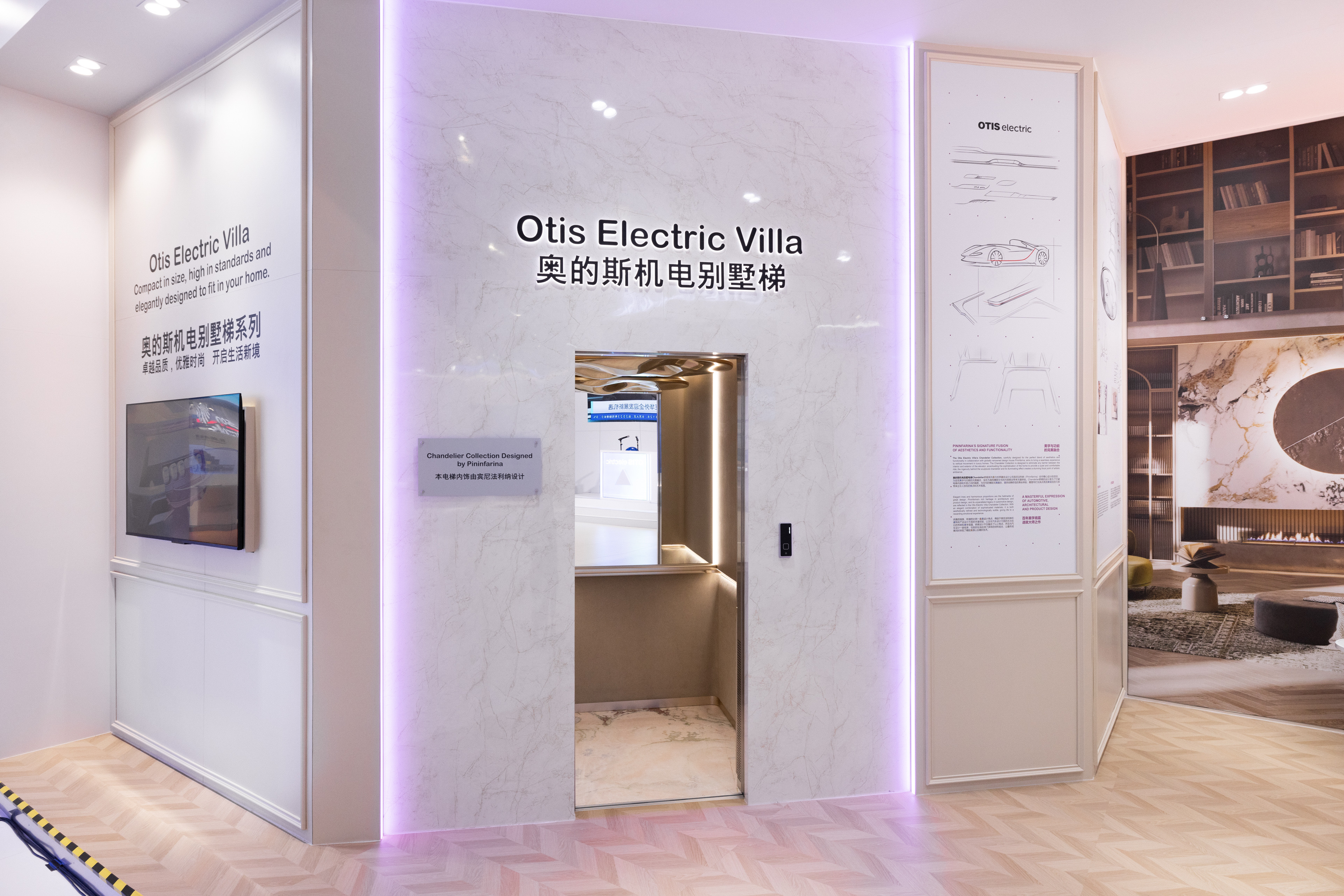 此外,全球電梯行業龍頭奧的斯在本進博會上發佈了兩款電梯新品。其中,Otis Electric Villa為家用電梯新品,其內飾採用了賓尼法利納設計公司推出的獨家定製轎廂設計,靈感源自豪華跑車的工業設計。
