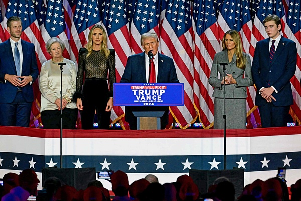當地時間11月6日,特朗普發表講話宣佈勝選 視覺中國