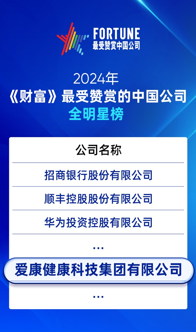 愛康集團榮登“2024年《財富》最受讚賞的中國公司”全明星榜