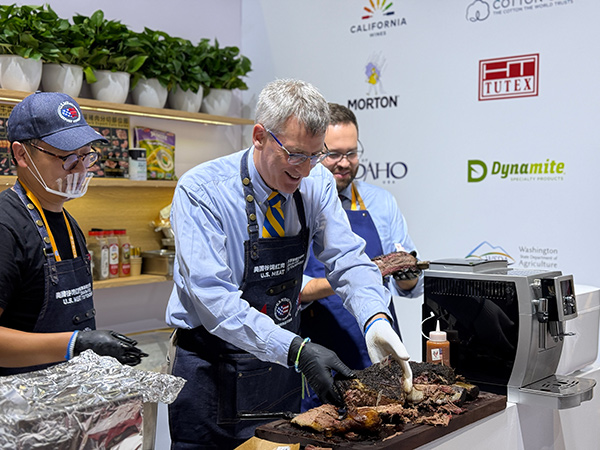 本屆進博會,美國食品與農業館面積擴大,參展商和企業帶着牛肉、紅酒、馬鈴薯、棉花、大米、幹豆、花旗參、大豆等產品前來。