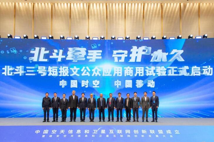 11月6日,中國空天信息和衞星互聯網創新聯盟成立大會在雄安召開,中國移動攜手中國時空正式發佈北斗短信業務,中國移動副總經理高同慶出席發佈儀式並演講。