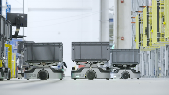 系統的“智能”之處在於核心產品設計,智狼搬運機器人和智狼飛梯機器人模塊化設計獨立運行,結合京東物流料箱上存下揀算法以及貫通緩存位技術,使得搬運機器人運動路網全量放開,整體運行效率大幅提升。搬運機器人配置高精度導航算法以及雙向激光障礙物檢測技術,確保運行過程流暢無阻;飛梯機器人由雙電機並行實現高效運行控制,結合視覺電控多重校驗,實現高精定位,確保料箱的準確取放。