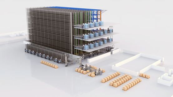 智狼貨到人系統融合了智狼搬運機器人、智狼飛梯機器人、立體貨架等核心組件,以及自動入庫和揀選工作站、空箱自動迴流線等輔助設施,共同構成了一個高效、智能的物流解決方案。其“立體”特性體現在對空間的高度利用,能在10米以下的淨空高標庫房中實現高密度存儲,存儲坪效比行業平均水平高出2.5倍。