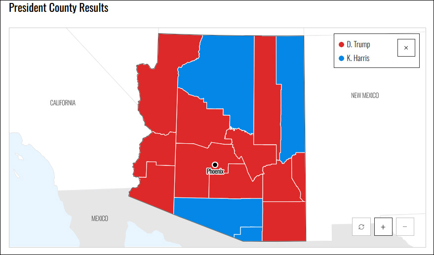 儘管哈里斯在投票日當晚短暫取得領先,但在之後的計票過程中,特朗普始終在亞利桑那州保持優勢。