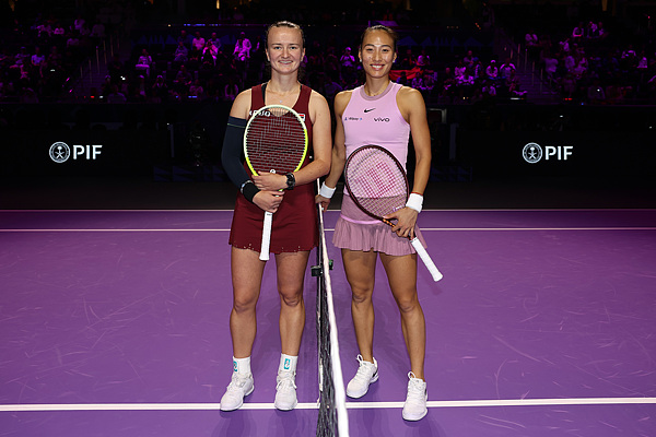 當地時間11月8日,沙特阿拉伯利雅得,2024WTA年終總決賽女單半決賽,鄭欽文2-0克雷吉茨科娃。視覺中國