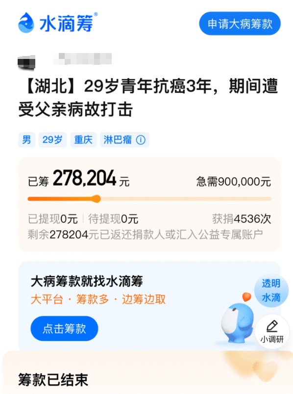 抗癌者籌款5天后曬新房照引熱議,水滴籌:已追回全部款項278204元