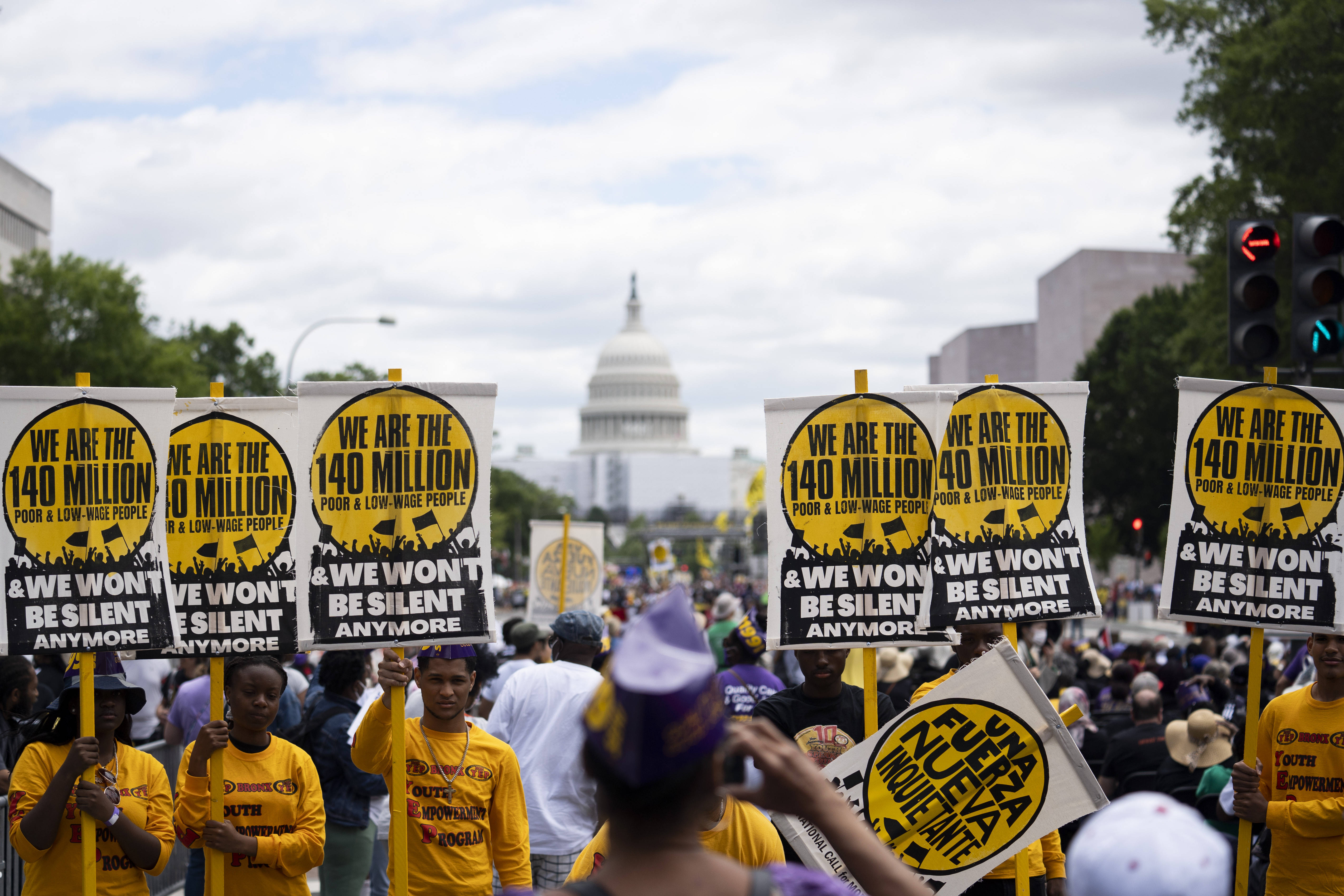 2022年6月18日,來自美國全國各地的數千民眾在華盛頓國會大廈附近舉行集會,抗議美國根深蒂固的種族歧視以及由此引發的經濟不公等一系列社會問題。 新華社