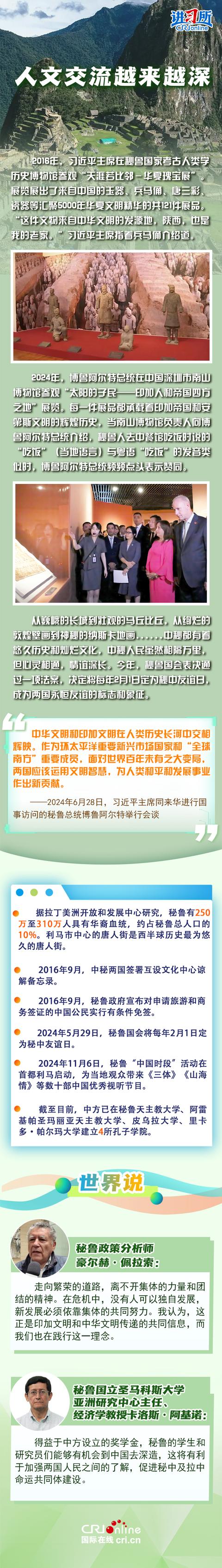 時隔八年,習近平主席的秘魯之行即將開啓,兩國元首半年內實現互訪,體現出雙方高水平的政治互信。中秘這對跨洋“友鄰”也必將在元首外交的戰略引領下,抒寫更多民相親、心相通的動人故事。