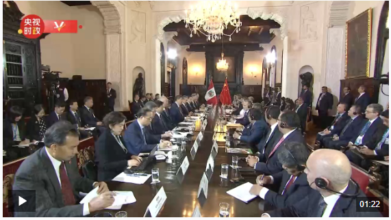 習近平指出,很高興應總統女士邀請,對秘魯進行國事訪問並出席亞太經合組織領導人非正式會議。這是我第三次訪問秘魯,也是繼去年我們在舊金山初次會晤和今年你訪華以來,我在一年時間裏第三次同總統女士會晤。一踏上秘魯這片美麗的土地,我就強烈感受到秘魯人民對中國人民的友好情誼,心裏十分温暖。