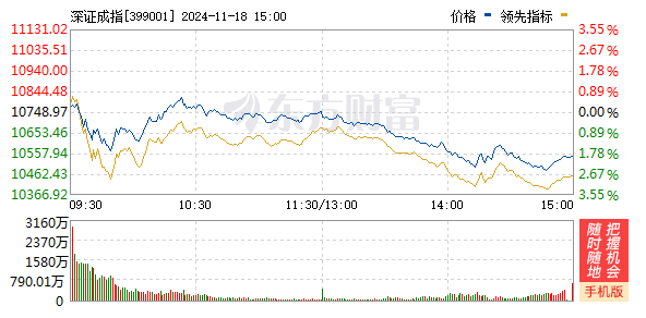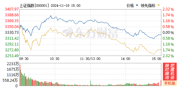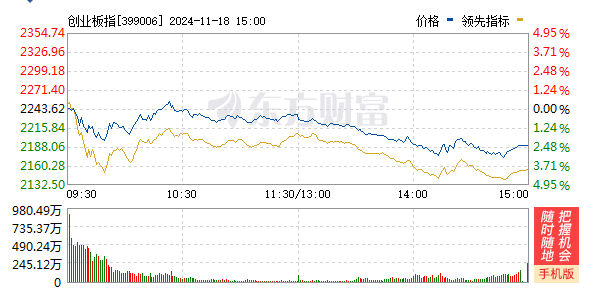 11月18日,市場全天衝高回落,三大指數午後悉數轉跌。上證指數收跌0.21%,一度漲超1.6%;深證成指收跌1.91%,創業板指收跌2.35%,三個交易日跌超9%。當天,兩市成交額17577億元,較上一交易日縮窄688億元;大盤資金淨流出超900億元。