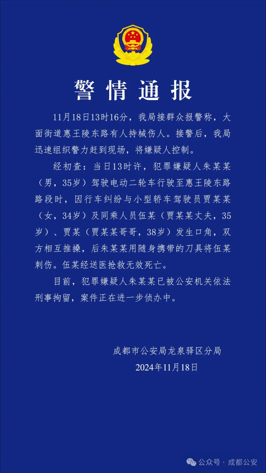 男子因行車糾紛刺死女司機丈夫,成都警方通報