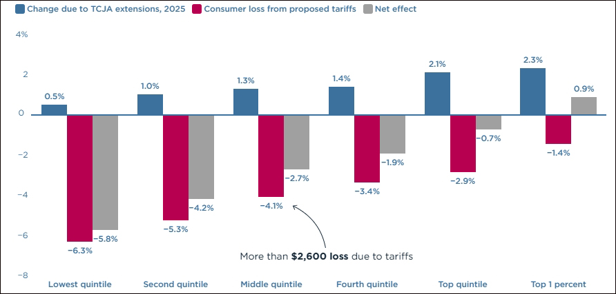 今年8月,彼得森國際經濟研究所發佈題為《特朗普更大的關税威脅,將使普通美國家庭每年損失超過2600美元》報告。報告稱,經推算,特朗普對華加徵60%關税,意味着美國的税收負擔將從富裕納税人轉移至低收入羣體:收入越低的家庭,損失越大;而最富有的1%將實現收入淨增長。