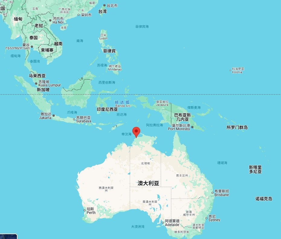 達爾文港位於澳大利亞北部,離中國南海並不遙遠 谷歌地圖