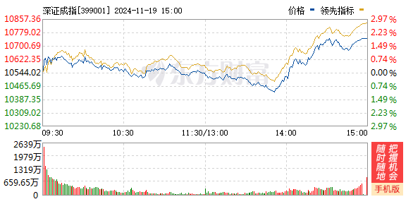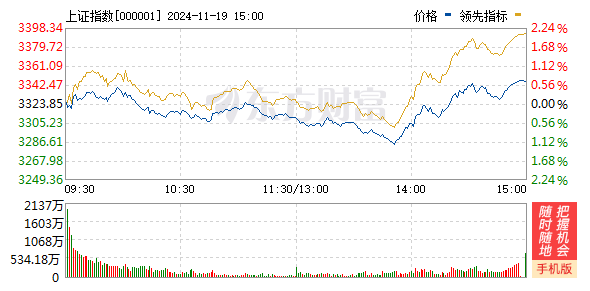 11月19日,A股三大指數午後觸底回升:截止收盤,滬指3300點失而復得,漲0.67%;深證成指漲1.9%,創業板指漲3%;北證50漲0.89%,一度跌超6%。滬深兩市全天成交額1.56萬億,較上個交易日縮量1996億,大盤資金淨流出超360億元。