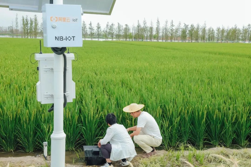在中國東部的浙江嘉善縣西塘縣,中國水稻研究所與互聯網巨頭阿里雲聯手,進行了一項名為“低碳稻作技術”的新實驗。這一項目以竹小匯低碳智慧農田示範方為核心,覆蓋了400畝核心區域及1500畝輻射區。通過對農田安裝多種物聯傳感設備、高精準定位和無人化操作,來對水稻農田進行全過程管理,包括對每一塊水稻田進行精準灌排。系統將根據水稻生長階段設置相應的水位線標準,自動調整進出水量。
