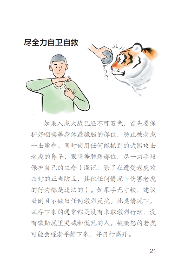 為了應對人獸衝突問題,東北虎豹國家公園管理局編撰了《人虎衝突應對社區指南》動畫宣傳片和《遇到老虎怎麼辦?》宣傳手冊,供廣大社會公眾參考。
