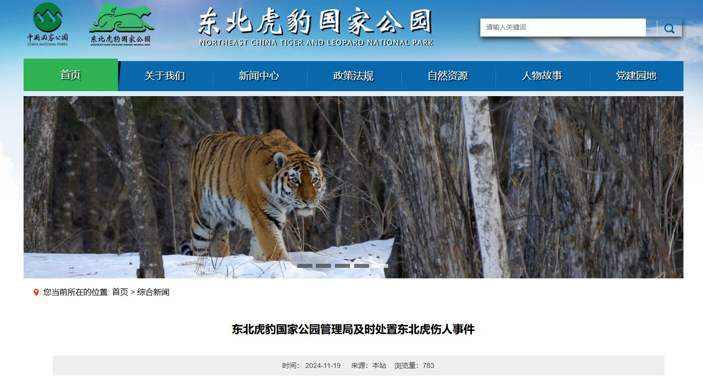 據東北虎豹國家公園網站,11月19日,東北虎豹國家公園管理局通報東北虎傷人事件處置情況。