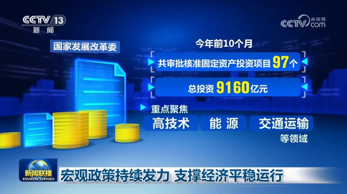 記者今天(19日)從國家發展改革委瞭解到,今年前10個月,國家發展改革委共審批核準固定資產投資項目97個,總投資9160億元,重點聚焦高技術、能源、交通運輸等領域。同時,提前下達2025年度以工代賑中央專項投資90.5億元,支持地方實施以工代賑項目2000餘個。