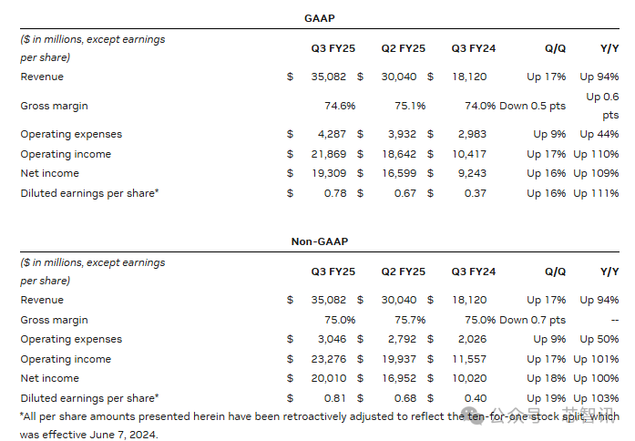 當地時間11月20日,美國GPU巨頭英偉達公佈了截至2024年10月27日為止的2025財年第三季財報,營收、淨利潤均超市場預期。