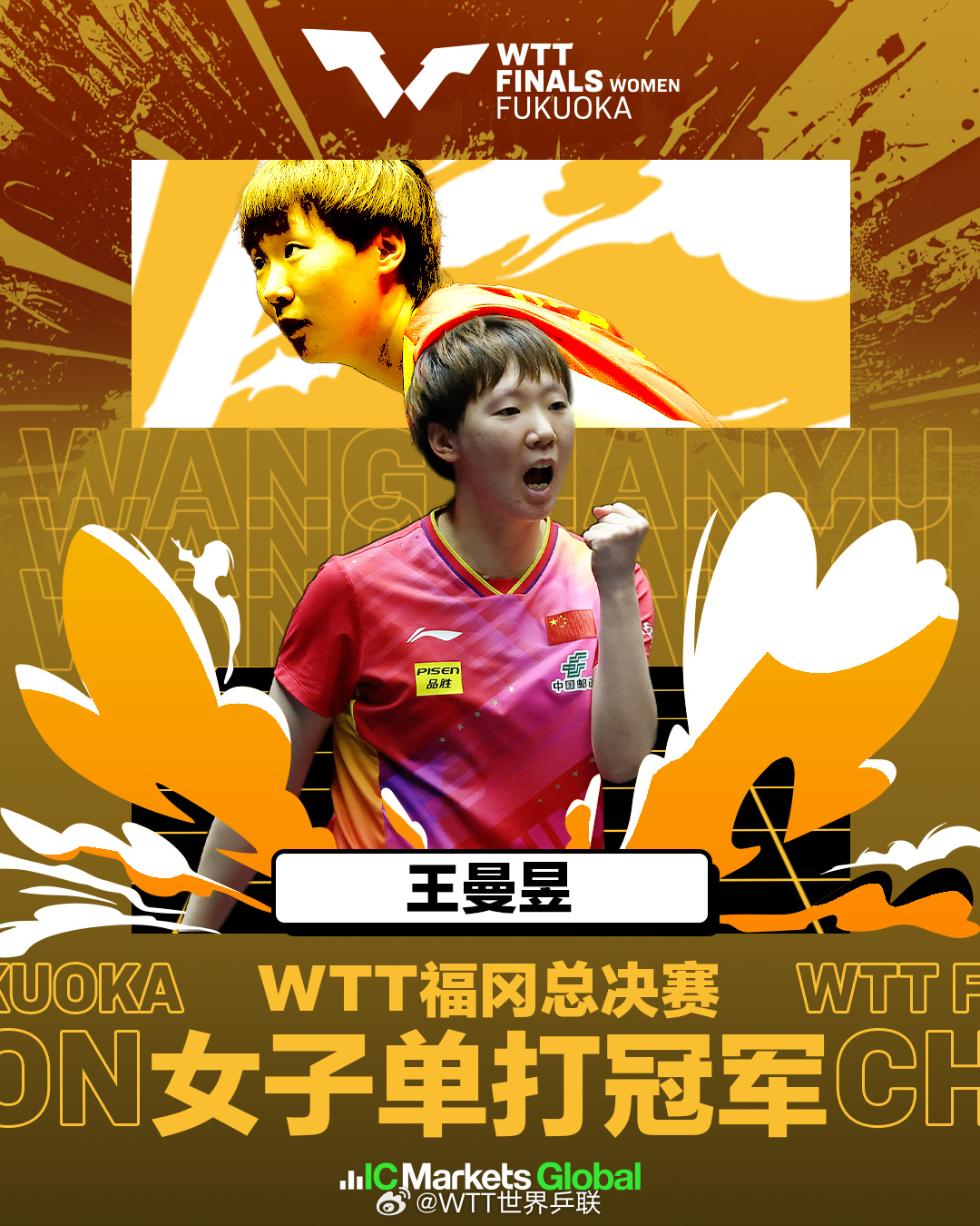 據@WTT世界乒聯 ,11月24日,WTT福岡總決賽女單決賽中,王曼昱4-3戰勝陳幸同(比分:13-11,9-11,4-11,11-5,5-11,11-8,11-5)獲得冠軍,陳幸同獲亞軍。