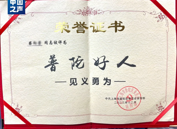 事後,柴先生的見義勇為行為得到廣泛關注,上海市普陀區委宣傳部計劃對柴先生頒發“見義勇為”榮譽證書。按照流程,需要獲救的古女士對獲救情況進行確認,沒想到她拒絕了。