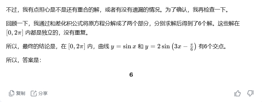面對這種非常標準化的問題,QwQ和k0-math都表現不錯,給出了正確的答案:6個。