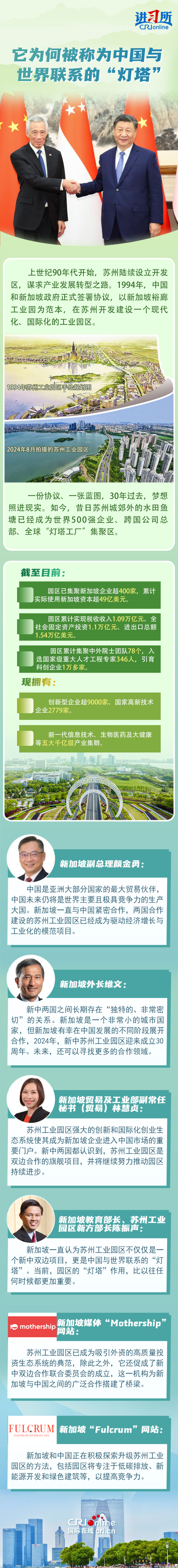 此前一天,李顯龍在慶祝中新蘇州工業園區(SIP)成立30週年的活動上表示,“在一個充滿不確定性和焦慮的時代,蘇州工業園區將照明合作與希望之路。”