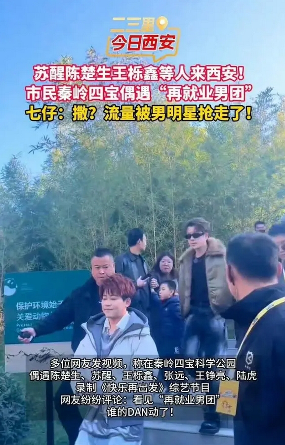另據網友透露,12月1日在秦嶺四寶科學公園偶遇陳楚生、甦醒、王櫟鑫、張遠、王錚亮、陸虎等人錄製《快樂再出發》綜藝節目。該綜藝節目的錄製導致部分遊客未能如願見到大熊貓七仔,引發遊客不滿。