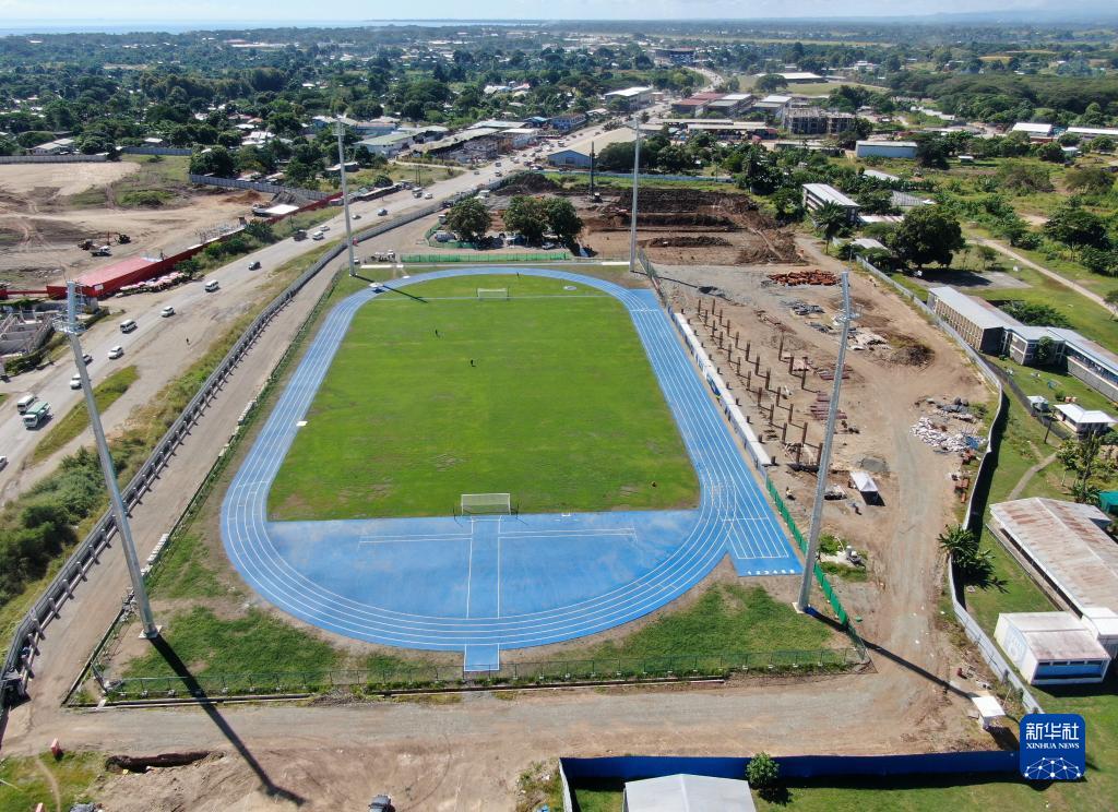 2022年5月4日,所羅門羣島首都霍尼亞拉,中國援建的所羅門羣島2023年太平洋運動會體育場館項目練習跑道和足球場 新華社