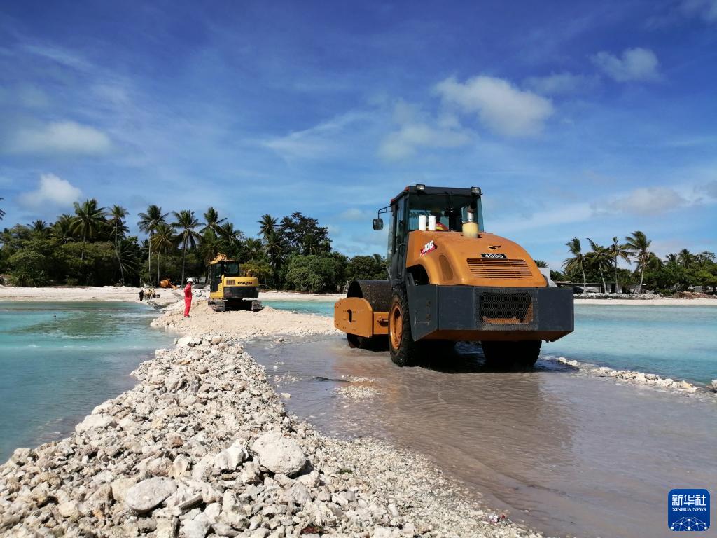 2021年12月24日,在基里巴斯塔拉瓦布塔村拍攝的便橋施工現場。 新華社