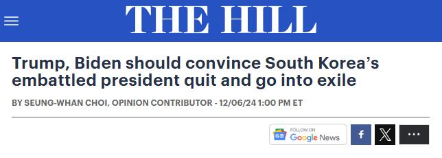 《國會山報》標題:特朗普和拜登應説服深陷困境的韓國總統辭職並流亡海外