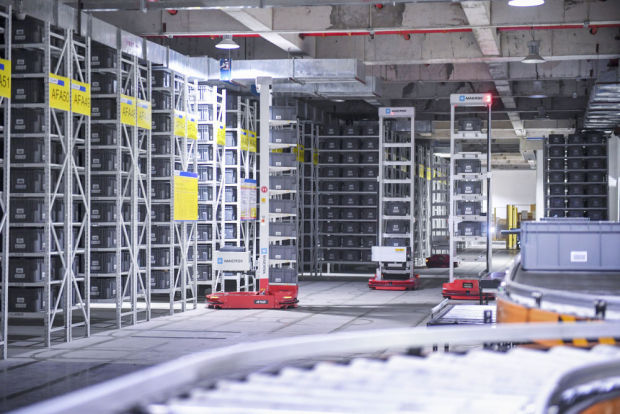 2024年11月27日,機器人在深圳前海綜合保税區一家立體自動化倉庫內分揀貨物。前海支持跨境供應鏈業務創新,通過“全球中心倉”等方式實現了貨物按狀態分類監管模式創新。