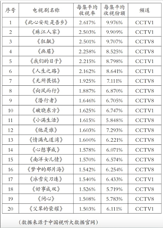 2023年央視黃金時段收官電視劇單頻道收視率TOP20中,有《我們的日子》《人生之路》《情滿九道灣》等7部作品為年代劇。《郝靜靜 劉玥玥:互文、重塑與還原——作為文化記憶的年代劇》