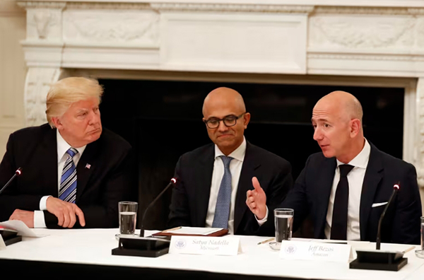 2019年,亞馬遜在一份法律訴狀中稱,該公司失去了美國國防部的一份價值100億美元的雲計算合同,是因為特朗普施加“不當壓力”,特朗普發起的“反覆公開的和幕後的攻擊”引導五角大樓遠離亞馬遜網絡服務公司(AWS),以打擊其首席執行官貝索斯。