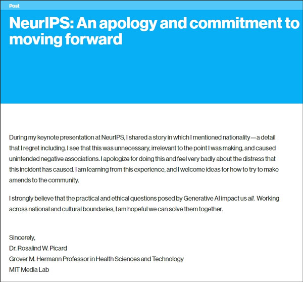 皮卡德道歉信 NeurIPS官網(點擊查看大圖)