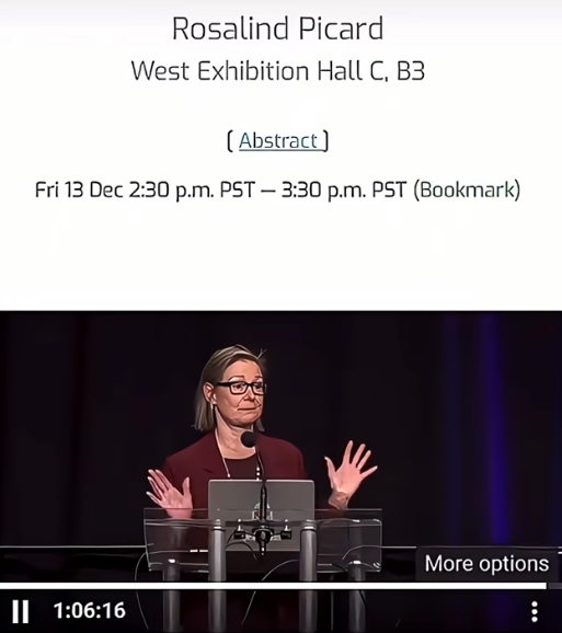 諷刺的是,當地時間12月13日,在這樣一個頂會上,麻省理工學院傳媒與藝術、健康科學與技術教授皮卡德在講述人工智能道德準則問題時,放上了一張明顯難以通過道德準則審查的幻燈片。
