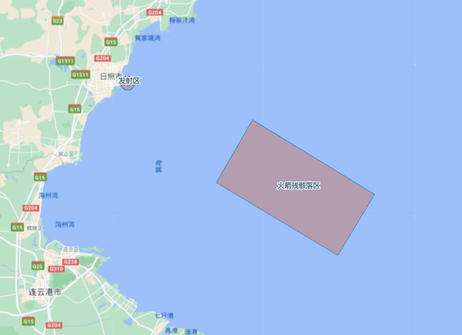12月19日至21日每日17時至19時,船舶禁止進入由35-00.86N 120-00.53E、35-15.14N 120-10.60E、34-58.22N 120-44.59E和34-44.29N 120-34.46E四點連線圍成的區域(火箭殘骸落區)。