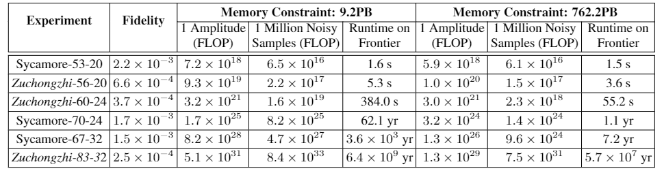 論文中給出了兩種不同的場景來進行計算成本估計。一種場景是以Frontier超級計算機實際的內存量 9.2 PB(1PB = 1024TB,是衡量計算機存儲容量的單位)為基礎進行考慮。另一種場景則是把Frontier的實際內存和它所有的存儲容量加起來,得到762.2PB來進行估算,不過後者在實際中並不現實,因為通常很難將所有存儲都完全當作內存來使用,會受到計算機架構、數據管理等諸多因素限制。無論在哪種情況中,祖沖之三號都展現出了遠超傳統超算的實力。